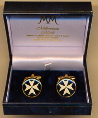 Knights Malta M/G Round - White Cross Black Enamel Cufflinks*
