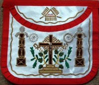 ![]() Most Wise Sovereign Apron - Fully Hand Embroidered It is important to note that the regalia supplied by Millennium Mark has been checked and approved as the correct Scottish Constitution patterns as contained in the Supreme Council for Scotland, Constitution and Laws (Revised Edition 2001). Other suppliers design concepts may differ from that of Millennium Mark but the Grand Secretary General has established the correctness of our patterns. Please refer to Statutes for confirmation of correct patterns being used by Millennium Mark. |