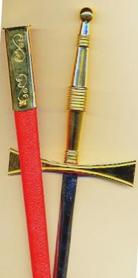 Sword and Scabbard - Gold Handle & Red Scabbard - Plain Blade